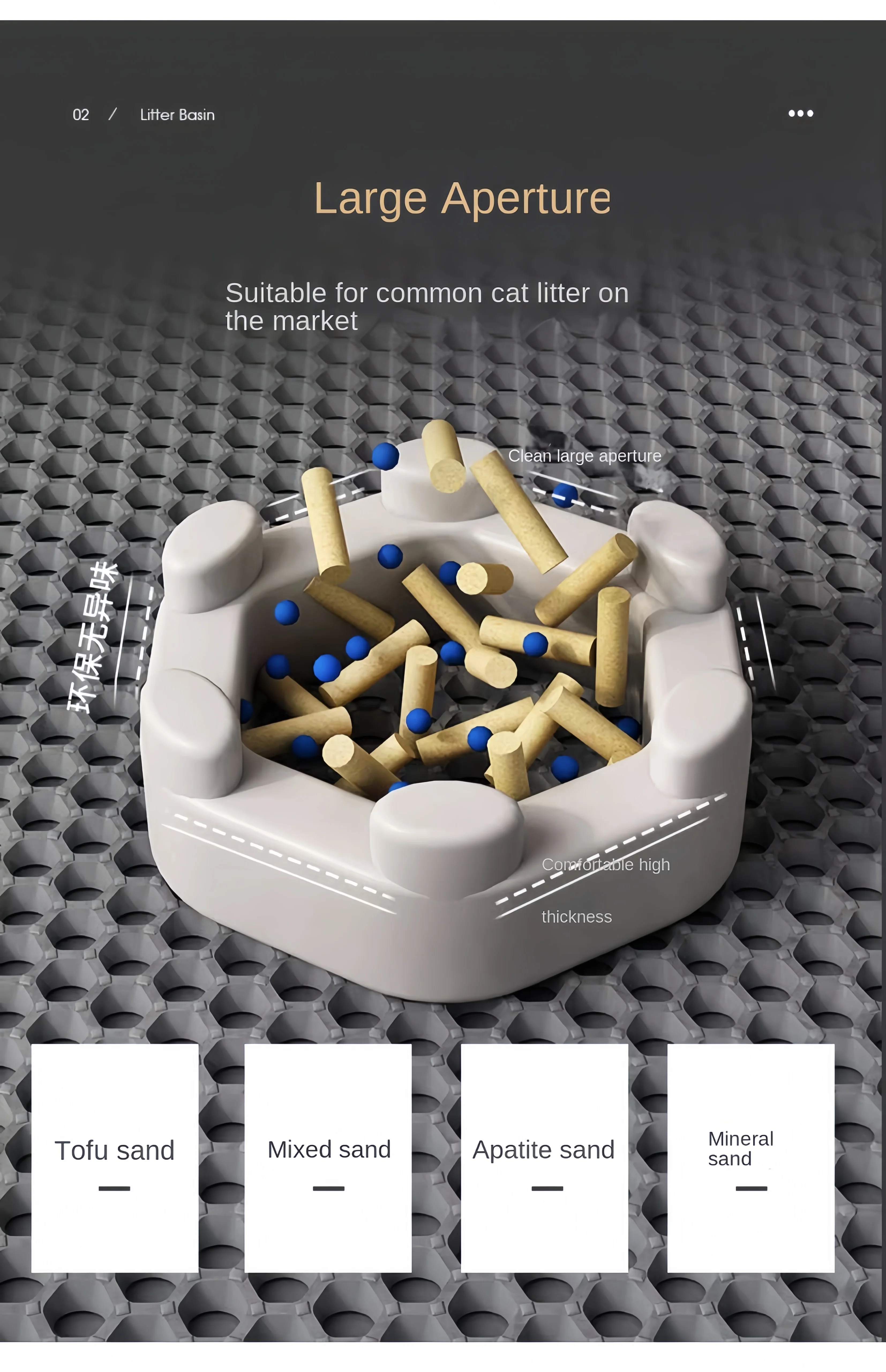 It is applicable to various types of cat litter, small cat litter boxes, hooded and self-cleaning cat litter boxes.